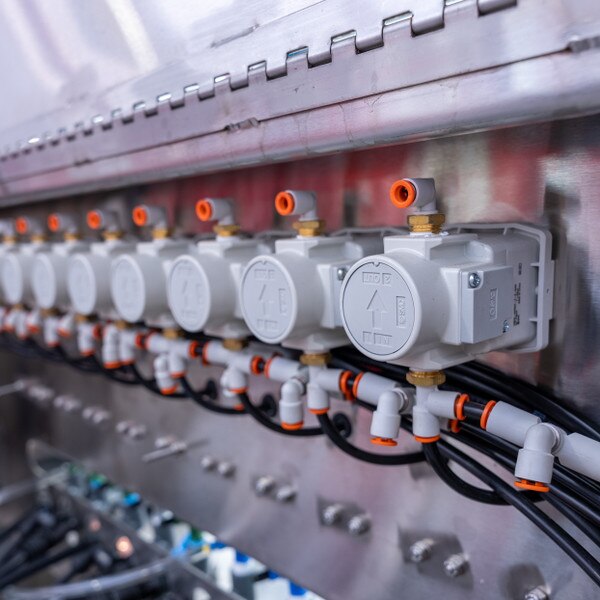 Versatile and reliable valve used in a variety of car wash applications, including the Detergent and Maintenance PODs, Drying Reverse Hugger, and FloPro panel, where its fast response and durable design are critical for consistent performance.