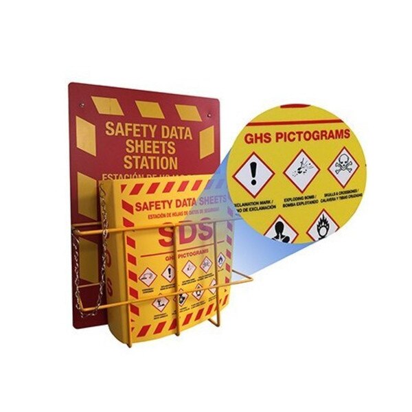 Bilingual Right to Know SDS Center Wire Rack and 3" Binder with GHS Pictograms.