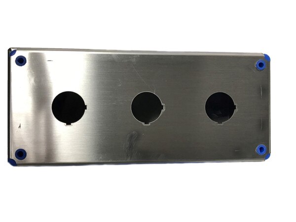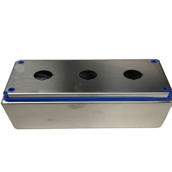 This 3 hole push button enclosure is used in the stainless push button stations located throughout the wash tunnel. It is used in multiple types of push button stations including the Stop-Start-Pause Push Button Station, Maintenance POD Push Button Station, and Garage Door Push Button Station. This enclosure holds three holes for the 3 function push button stations it is used in. Each hole is 22mm in diameter. This enclosure is stainless steel and UL listed making it the perfect enclosure to handle the environments of a car wash.