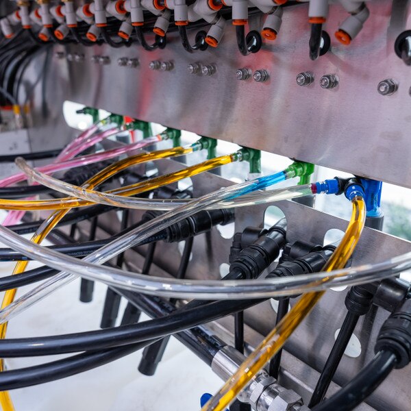 The Clear Superthane Ether-Based Draw Line Tubing is a high-performance chemical draw solution sold in convenient 100-foot spools. This tubing is essential for managing concentrated pre-soak and brite chemical lines within the Detergent PODs and the FloPro Detergent system.
